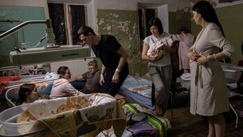 قامت الدكتورة أولينا ياروشتشوك، نائبة رئيس مستشفى الولادة رقم 5، بتوجيه النساء إلى المقاعد على طول الجدران، حيث جلسوا بصمت تقريبًا في الفضاء الذي بالكاد يضيء، في انتظار الدقائق القليلة حتى يمر الخطر الوشيك.