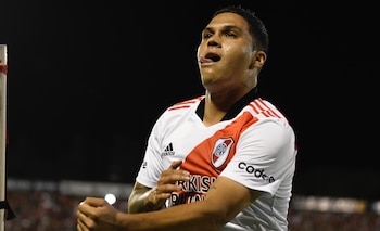 يوم رائع للاعبي القهوة في كرة القدم الغاوتشو حيث سجل خوان فرناندو كوينتيرو في فوز ريفر بلايت الذي تغلب على أرجنتينوس جونيورز 4-2 في Monumental للتاريخ 9 من المجموعة أ.
