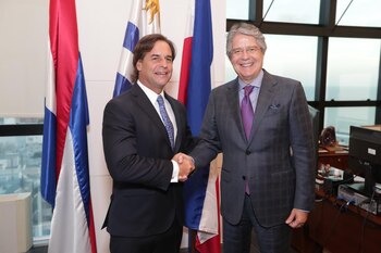 واجتمع الرئيس الاكوادور غييرمو لاسو مع نظيره الأوروغواي لويس لاكال بو في إطار الزيارة الرسمية للرئيس الإكوادوري إلى أوروجواي. اجتمع رؤساء الدول بعد ظهر يوم الثلاثاء الماضي في البرج التنفيذي الواقع في مدينة مونتيفيديو. وخلال الاجتماع، تبادلوا الخبرات في مجالات مختلفة وناقشوا إمكانية توقيع اتفاقية تجارية ثنائية.