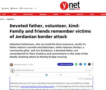 Adrián Marcelo Podzamczer era un argentino que vivía desde hacía muchos años en Israel, y que encontró la muerte trágicamente este domingo cuando fue una de las tras víctimas del atentado terrorista en el paso fronterizo del puente Allenby, entre Jordania y Cisjordania.