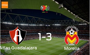 Morelia ganó a Atlas Guadalajara 3-1 durante el duelo celebrado este viernes en el Jalisco. Los dos equipos venían de cosechar resultados dispares en sus últimos partidos. Atlas Guadalajara llegó al partido con los ánimos reforzados después de ganar en su feudo por un marcador de 2-1 a Tijuana. Respecto al equipo visitante, Morelia cayó derrotado por 2-1 en el último partido que disputó frente a León. Con este resultado, el conjunto guadalajarense es noveno, mientras que Morelia es decimocuarto tras la finalización del encuentro.