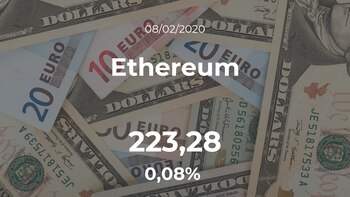 Sesión de leves movimientos para el Ethereum, que cotizó a las 19:05 horas a 223,28 dólares, lo que supone un leve cambio del 0,08% frente a la jornada previa.