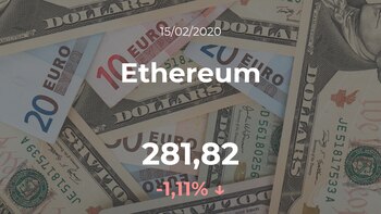 El Ethereum se negoció a las 00:59 horas a 281,82 dólares, de modo que implicó una caída del 1,11% con respecto a los 284,97 dólares de la jornada anterior.