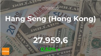Día en positivo para el índice, que terminó la sesión del lunes 17 de febrero con incrementos del 0,52%, hasta los 27.959,60 puntos. El Hang Seng (Hong Kong) marcó la cifra máxima de 28.055,58 puntos y la cifra mínima de 27.766,71 puntos. El rango de cotización para el Hang Seng (Hong Kong) entre su punto más alto y el más bajo (máximo-mínimo) durante este día se situó en el 1,03%.