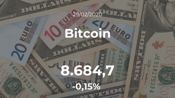 Sesión de leves movimientos para la moneda virtual, que se negoció a las 00:42 horas a 8.684,70 dólares, un ligero -0,15% de diferencia con el día anterior.