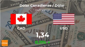 El Dólar Canadiense / Dólar (CAD/USD) se cotiza a las 19:08 horas a 1,34 dólares, lo cual implicó una mejora del 0,11% comparado con la cifra de la jornada anterior, cuando marcó 1,34 dólares.