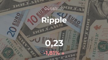 En la última jornada el Ripple cotizó a las 20:07 horas a 0,23 dólares, de modo que implicó una bajada del 1,81% con respecto a los 0,24 dólares de la jornada anterior.