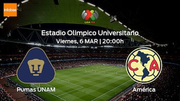 Como local, Pumas UNAM tiene un balance de tres victorias y una derrota en cuatro partidos jugados en su campo, de modo que no podremos conocer cuál será su desenlace en este encuentro, pero sí que deberá esforzarse para ganar. A domicilio, América tiene un balance de tres victorias y un empate en cuatro partidos disputados, de modo que será un duro rival para Pumas UNAM, que tendrá que poner todo de su parte para defender la ventaja de campo.