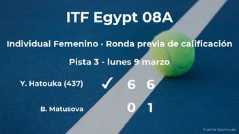 Yuliya Hatouka, bielorrusa, número 437 de la WTA, cumplió las previsiones al ganar por 6-0 y 6-1 en cero horas a la tenista eslovaca Barbora Matusova en la ronda previa de calificación del torneo de El Cairo. Con este resultado, seguiremos viendo a la jugadora en la siguiente fase del torneo de El Cairo.