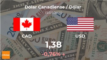 Al inicio de la jornada el dólar canadiense se negocia a las 09:52 horas a 1,38 dólares, lo cual implicó una disminución del 0,76% frente a la cifra de la jornada anterior, cuando marcó 1,39 dólares.