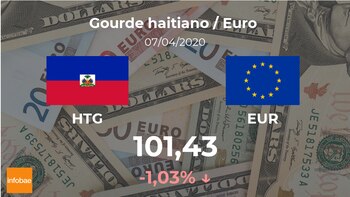 El euro se negocia a las 11:00 horas a 101,43 gourdes, lo que implicó una disminución del 1,03% si se compara con los 102,48 gourdes de la jornada previa.