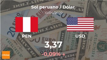 El dólar estadounidense se negocia a las 11:00 horas a 3,37 soles, de modo que implicó un descenso del 0,09% con respecto a la cotización del día anterior, cuando se situó en 3,37 soles.