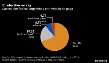 Una encuesta de noviembre del instituto nacional de estadísticas Indec reveló que casi 70% de todos los gastos de los hogares se pagan en efectivo, siendo alimentos, bebidas y tabaco las principales compras. La mayoría de las personas dependen del efectivo, miles de pensionados y demás ciudadanos se apresuraron a cobrar los pagos de asistencia social del Gobierno e hicieron largas filas cuando los bancos reabrieron el 3 de abril.