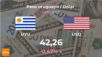 Tras la apertura de la sesión bursátil el dólar estadounidense se cotiza a las 06:21 horas a 42,26 pesos uruguayos, lo que supuso una disminución del 0,47% si se compara con los 42,46 pesos uruguayos de la jornada previa.
