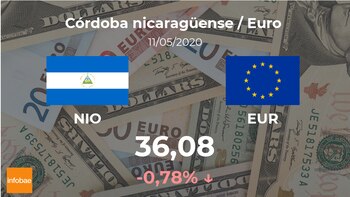 Tras la apertura de la sesión bursátil el euro se cotiza a las 07:49 horas a 36,08 córdobas nicaragüenses, lo que supuso una bajada del 0,78% con respecto a la cotización del día previo, cuando finalizó con 36,37 córdobas nicaragüenses.