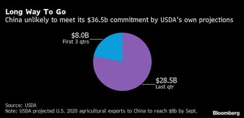 (Bloomberg) -- La promesa del presidente de EE.UU., Donald Trump, de que su acuerdo comercial de fase uno con China proporcionaría una bonanza de US$36.500 millones en el año electoral para su base rural siempre fue exagerada. Ahora parece que nunca se cumplirá.