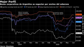 Los bonos de YPF y la perforadora de petróleo y gas Pampa Energia SA estuvieron entre los mejores en mercados emergentes en el último mes. Las ganancias fueron impulsadas por el aumento de la confianza en una reestructuración exitosa de la deuda del gobierno y el optimismo sobre el resurgimiento de la demanda regional de energía y combustible a medida que disminuyen los bloqueos, según el analista de Bloomberg Intelligence Jaimin Patel.