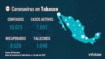 En Tabasco, 8.528 personas han superado el SARS-CoV-2, causante de la enfermedad COVID-19, 274 más que ayer, lo que reduce el número de personas contagiadas y la región se queda con 1.097 casos activos. En total, se han contagiado 10.673 personas y hoy se han confirmado 210 nuevos infectados, según los últimos datos oficiales correspondientes al 1 de julio.