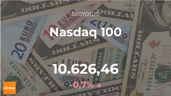 Sesión adversa para el Nasdaq 100, que cerró el día del jueves 16 de julio con leves bajadas del 0,7%, hasta los 10.626,46 puntos. El Nasdaq 100 anotó un volumen máximo de 10.658,90 puntos y la cifra mínima de 10.495,09 puntos. El rango de cotización para el Nasdaq 100 entre su punto más alto y el más bajo (máximo-mínimo) durante este día se situó en el 1,54%.