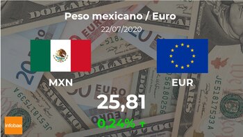 Tras la apertura de la sesión el euro se negocia a las 12:00 horas a 25,81 pesos mexicanos, de modo que implicó un ascenso del 0,24% con respecto a la cotización de la jornada previa, cuando acabó con 25,75 pesos mexicanos.