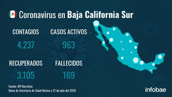 Según los últimos datos oficiales, en Baja California Sur ha crecido la cifra de personas contagiadas por coronavirus un 4,59 % tras reportarse 186 nuevos casos en el día de hoy, lo que eleva el número total de positivos en la región a 4.237 personas.