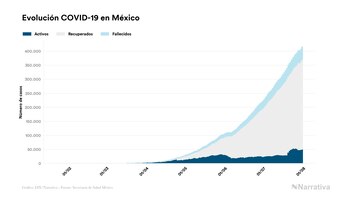 Según los últimos datos, actualmente en México hay 50.079 casos activos de COVID-19 tras confirmarse 7.730 nuevos positivos y 5.562 altas médicas este viernes. Desde el comienzo de la pandemia, el número total de contagiados asciende a 416.179, con 320.100 recuperados y 46.000 fallecidos.