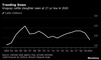 Nota Original:Cattle Slaughter in Beef Exporter Uruguay Could Hit 17-Year Low