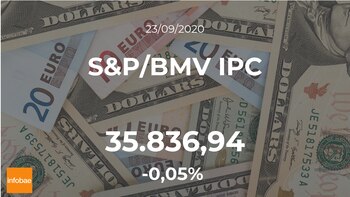 Jornada continuista para el S&P/BMV IPC, que cerró la jornada del miércoles 23 de septiembre con una leve subida del 0,05%, hasta los 35.836,94 puntos. El S&P/BMV IPC llegó a la cifra máxima de 36.119,32 puntos y un volumen mínimo de 35.669,50 puntos. El rango de cotización para el S&P/BMV IPC entre su punto más alto y el más bajo (máximo-mínimo) durante este día se situó en el 1,25%.