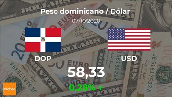 El dólar estadounidense se paga a las 10:00 horas a 58,33 pesos dominicanos, lo cual supuso un incremento del 0,28% frente a los 58,17 pesos dominicanos de la jornada anterior.
