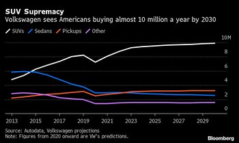 “Creemos que la tendencia va a continuar”, señaló Duncan Movassaghi, vicepresidente ejecutivo de ventas y marketing de la unidad estadounidense de VW, a los medios durante una sesión informativa sobre el Taos. El fabricante de automóviles anticipa que los estadounidenses comprarán casi 10 millones de SUV al año para finales de la década.