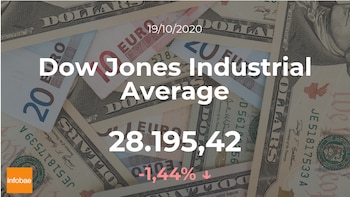 Día en negativo para el Dow Jones Industrial Average, que cerró la jornada del lunes 19 de octubre con caídas del 1,44%, hasta los 28.195,42 puntos. El Dow Jones Industrial Average marcó la cifra máxima de 28.711,93 puntos y la cifra mínima de 28.139,40 puntos. El rango de cotización para el Dow Jones Industrial Average entre su punto más alto y el más bajo (máximo-mínimo) durante este día se situó en el 1,99%.