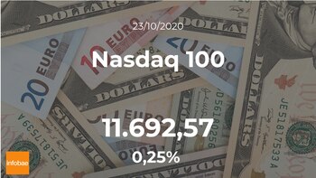 Sesión sin grandes cambios para el Nasdaq 100, que acabó el día del viernes 23 de octubre con una leve subida del 0,25%, hasta los 11.692,57 puntos. El Nasdaq 100 anotó un volumen máximo de 11.693,01 puntos y la cifra mínima de 11.569,09 puntos. El rango de cotización para el Nasdaq 100 entre su punto más alto y el más bajo (máximo-mínimo) durante este día se situó en el 1,06%.
