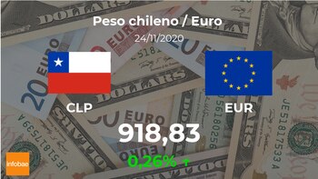 Tras la apertura de la sesión el euro se paga a las 09:04 horas a 918,83 pesos chilenos, de manera que supuso un ascenso del 0,26% si se compara con la cifra de la jornada anterior de 916,42 pesos chilenos.