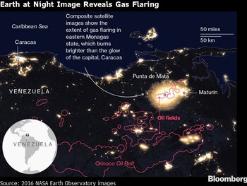 La paradoja es que la caída en la producción de petróleo ha hecho nada para frenar las emisiones de Venezuela. Esto se debe a que la industria no puede capturar y usar tanto gas como lo hizo hace una década, por lo que lo quema. Solo Estados Unidos, Rusia, Irak e Irán, todos con una producción mucho mayor, quemaron más gas el año pasado, según un estudio del Banco Mundial.