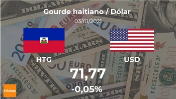 El dólar estadounidense cotizó a las 21:00 horas a 71,77 gourdes, lo que supone un ligero cambio del -0,05% frente al día anterior.