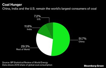 (Bloomberg) -- Los tres mayores consumidores de carbón del mundo, el combustible fósil más sucio, se preparan para aumentar tanto su uso que será casi como si la caída de las emisiones inducida por la pandemia nunca hubiera ocurrido.