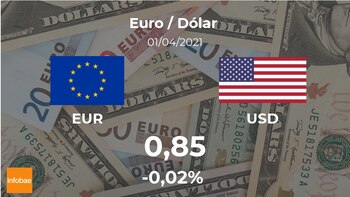 El dólar estadounidense se negocia a las 05:00 horas a 0,85 dólares, un ligero -0,02% de variación con el día precedente.
