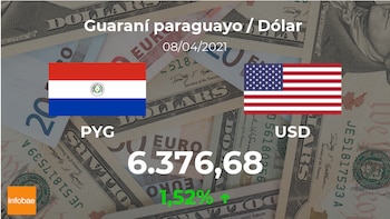 Tras la apertura de la sesión bursátil el dólar estadounidense se negocia a las 09:03 horas a 6.376,68 guaraníes, lo cual supuso un incremento del 1,52% con respecto al dato del día anterior, cuando cotizó a 6.281,26 guaraníes.
