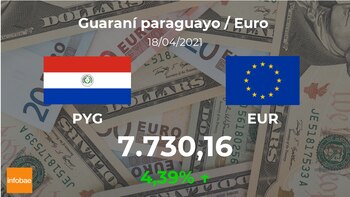 El euro se pagó a las 01:54 horas a 7.730,16 guaraníes, de manera que implicó un incremento del 4,39% frente a los 7.404,80 guaraníes de la jornada anterior.
