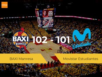 El BAXI Manresa ganó 102-101 al Movistar Estudiantes durante el trigésimo tercero choque de la Liga ACB que tuvo lugar este sábado en el Pavelló Nou Congost. En la jornada anterior, los jugadores del BAXI Manresa cayeron derrotados fuera de casa contra el Barça por 97-89. Por su parte, los del Movistar Estudiantes también perdieron en casa con el Coosur Real Betis por 82-96, por lo que tras el partido completaron una racha de cinco derrotas seguidas. Con este resultado, el BAXI Manresa se sitúa en octavo puesto y acumula 15 victorias en 32 partidos disputados, mientras que el Movistar Estudiantes se queda en decimoséptima posición con nueve victorias en 32 partidos jugados.