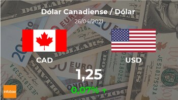 El dólar estadounidense se paga a las 09:18 horas a 1,25 dólares canadienses, lo que implicó un incremento del 0,07% si se compara con el dato del día anterior, cuando finalizó con 1,25 dólares canadienses.