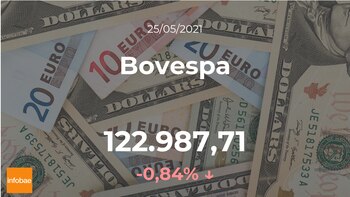 Día negativo para el Bovespa, que terminó el día del martes 25 de mayo con bajadas del 0,84%, hasta los 122.987,71 puntos. El Bovespa marcó la cifra máxima de 124.695,53 puntos y la cifra mínima de 122.700,96 puntos. El rango de cotización para el Bovespa entre su punto más alto y el más bajo (máximo-mínimo) durante este día se situó en el 1,6%.