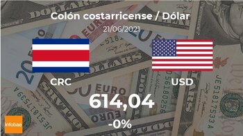 Al comienzo de la jornada el dólar estadounidense se paga a las 12:00 horas a 614,04 colones costarricenses, lo que supone un ligero cambio del -0% frente al día anterior.