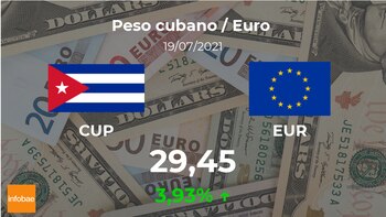 El euro se cotiza a las 13:00 horas a 29,45 pesos cubanos, de modo que implicó un ascenso del 3,93% frente al valor del día previo, cuando acabó con 28,33 pesos cubanos.