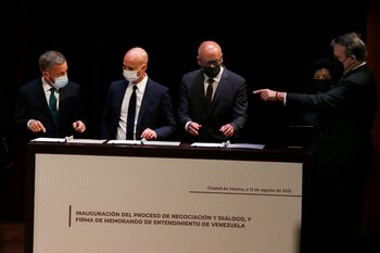 El memorando firmado incluye siete puntos de agenda, entre los que destacan la obtención de “derechos políticos para todos” y el levantamiento de sanciones contra el oficialismo venezolano. Se refiere a la oposición como “plataforma unitaria” y no alude al llamado “gobierno interino” que se instaló en enero de 2019 en Venezuela bajo el alegato de que Maduro usurpaba la presidencia.