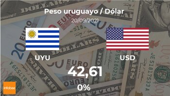 En el último año, el dólar estadounidense ha llegado a pagarse en un máximo de 44,39 pesos uruguayos, mientras que su nivel más bajo ha sido 41,46 pesos uruguayos. El dólar estadounidense se posiciona más cerca de su mínimo que de su máximo.