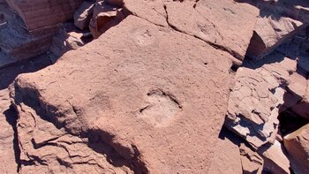 "Se trata de impresiones de entre 30 y 50 centímetros, de tres dedos, alargadas y con terminación puntiaguda, lo que sugiere que pertenecerían a un dinosaurio terópodo, de entre 1,20 y 1,50 metros de altura a la cintura, carnívoro y con garras", indicaron.