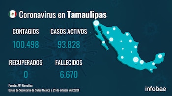 Actualmente, en Tamaulipas hay un total de 100.498 personas con coronavirus desde el primer positivo, según los últimos datos oficiales correspondientes al 21 de octubre.
