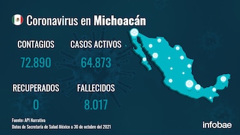 Actualmente, en Michoacán hay un total de 72.890 personas afectadas por el nuevo coronavirus desde el primer positivo, según los últimos datos oficiales correspondientes al 30 de octubre.