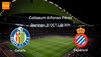 Respecto al equipo visitante, Espanyol cosechó un empate a uno frente a Athletic, sumando un punto en el último encuentro disputado de la competición, así que intentará seguir sumando puntos a su tabla clasificatoria frente a Getafe. Antes de este partido, Espanyol había ganado en tres de los 11 encuentros jugados en LaLiga esta temporada, con una cifra de 11 goles a favor y 11 en contra.
